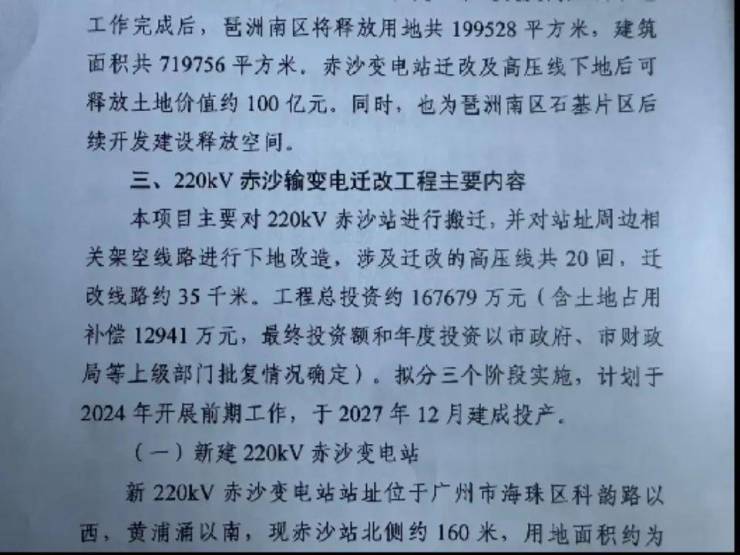 高压线、变电站迁改问题,明确今年就会开展前期工作,2026年完成拆除。
