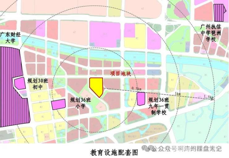 3、国际校圈:500米左右范围处规划一所36班小学、一所36班九年一贯制学校+国际私立+广东财经大学