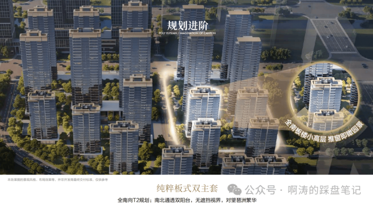 三块地位于琶洲南TOD项目东侧,就隔着一个大围公园,向北跨过黄埔涌,就是琶洲中区“印钞机”广交会展馆,有公园+河涌+CBD景观,不仅地段能打,景观资源也同时在线,有做改善产品的条件。