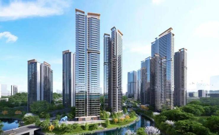 其总建面约90万方,汇聚购物中心、总部办公、高端住宅、配建学校/幼儿园、康养中心、生态公园等多种功能。