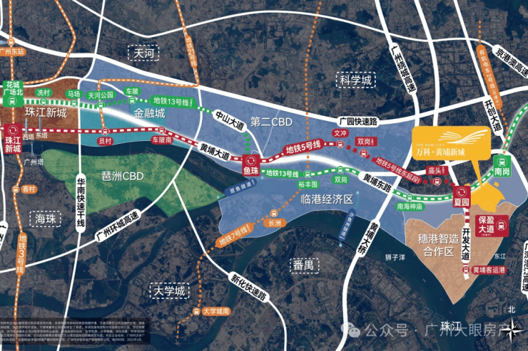 附近有广州最核心的地铁5号线保盈大道站,以及13号线的南岗站,可以直达珠江新城、金融城、鱼珠CBD