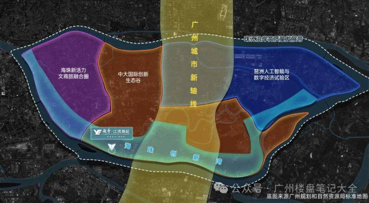 地处广州城市新轴线、珠江后航道和中大国际创新谷三轴交汇处,立足城市未来生态宜居、经济活跃、文化繁荣的滨水区域。