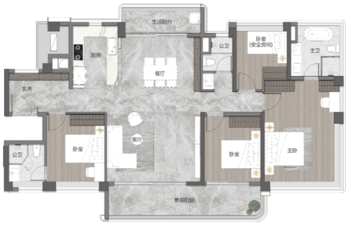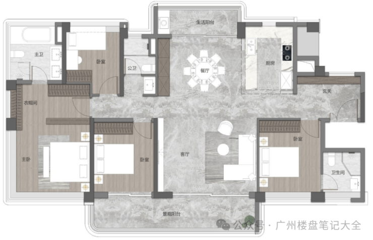 通透四开间朝南|一体化瞰江宽厅|270°全景女王主卧套房