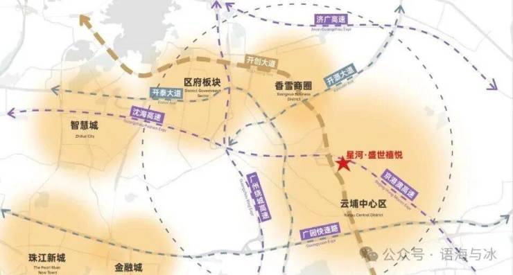 周边5公里范围内,一条开创大道汇集了萝岗万达、星际云汇、香雪城(在建)等醇熟商业。