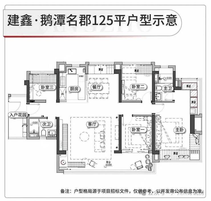 项目将打造三个样板间,分别是建面约88、105和125平。