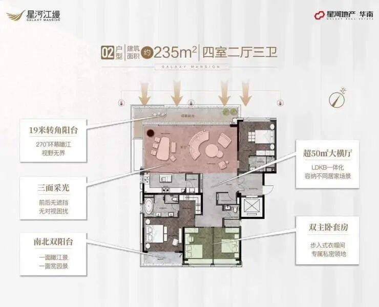 ——内享奢华、外享滨江,价值百万罗汉松、意大利进口阿尔卑斯绿石,户均超50㎡滨江景致,324席户户望江,私享约700米三江汇聚美景,打造珠江河畔艺术、轻奢、度假式居住空间,营造沉浸式居住生活