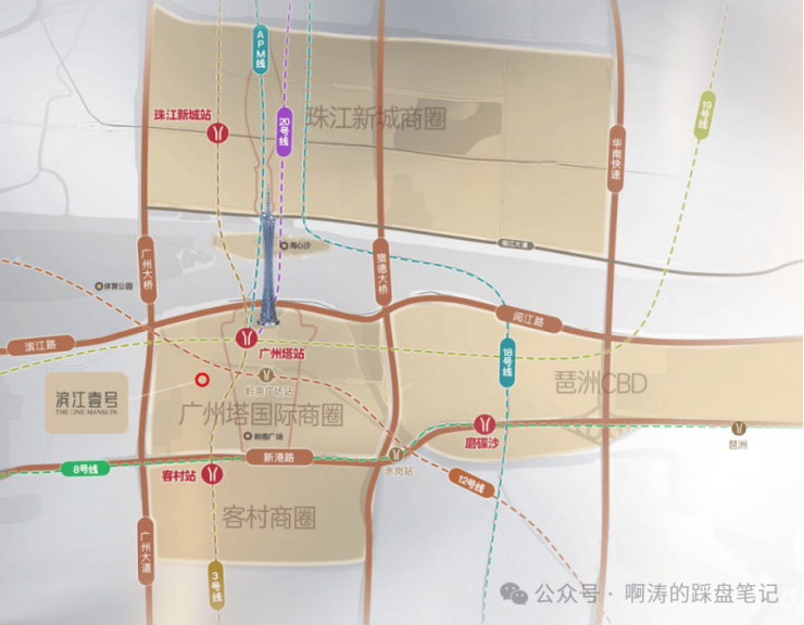 约2公里直达珠江新城、琶洲CBD,;