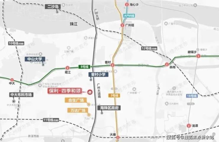 项目距离最近的地铁站是8号线客村站和鹭江站步行距离都是1.5公里左右,周边还有3/10/11号线,4条地铁交汇,1站可达广州塔,2站到珠江新城,3站至琶洲西区。