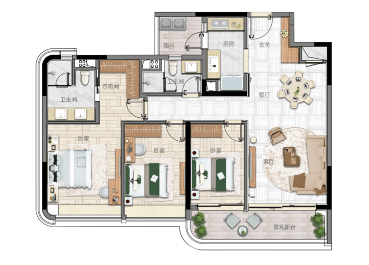 家门口就有23万㎡精致园林景观,打造为市中心超大规模的城市生态绿洲,包括2公里中央景观长廊、5万㎡山顶公园、3万㎡汇景湖等。