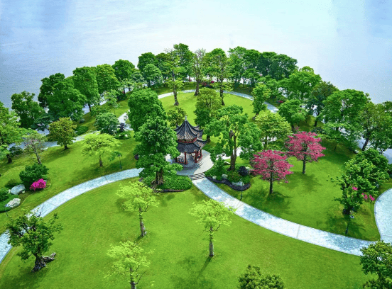 【岛尖臻境晨露园】汇聚八角亭、珍木繁花及奇石等多样美景于一园,看江河汇聚之壮阔风光,自然与人文和谐相融。晨时,漫步于晨露园中,看第一缕曙光划过江面,和煦的江风拂面,写意生活,从这里开始。