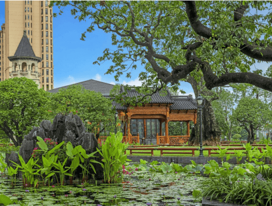 半岛五號超极园林,中式园林里程碑级巨著:江园合一自然与人文交融,媲美皇家园林,再现唐诗宋词风雅意境,开创了中国人居园建的新里程。现已全面落成。中轴对称布局讲究礼序规制,600 多棵参天大树掩映 4.6 万方莲池水体;千米风雨连廊串连 21 座亭台廊轩,古典建筑满工雕花精美绝伦,木雕上的传统美学与历史典故栩栩如生,均为非遗香山帮老工匠手工雕琢;43 组大型景石玲珑剔透、重峦叠嶂;近50块匾额与 30 副多对联,文化深厚、画龙点睛。