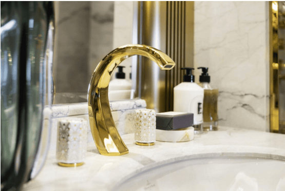 地面铺装来自土耳其的阿玛尼棕奢石,奢中带雅,宁静舒适;