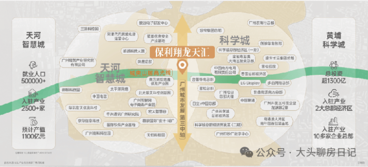 ☁︎项目位于广州第三发展中轴线“科技创新轴”,天河智慧城和黄埔科学城双城交汇之地