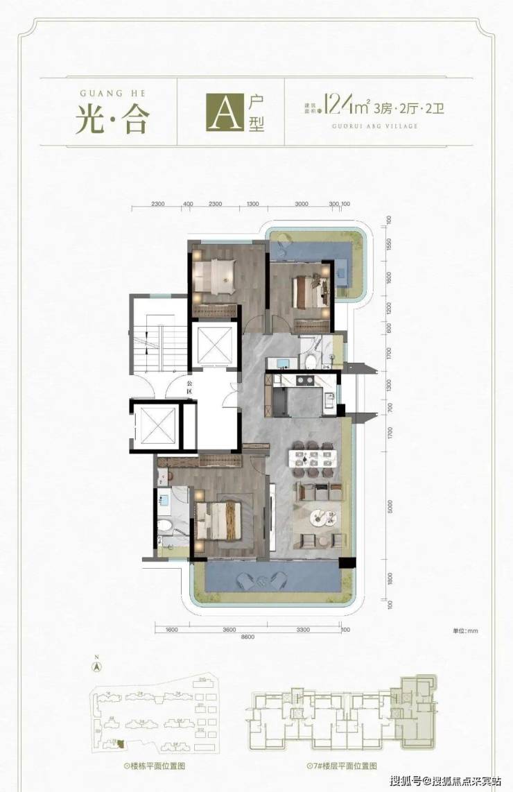 A户型: 建面约124㎡ 3房2厅2卫