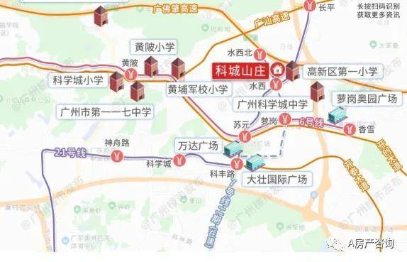 项目自带一所公立小学——广州高新区第一小学,附近还有省一级的广州科学城中学,中山大学附属第三医院岭南医院(三甲)、萝岗中医院也在周边。项目隔壁就是萝岗敏捷广场,万科广场也在附近...购物、逛街都很方便。