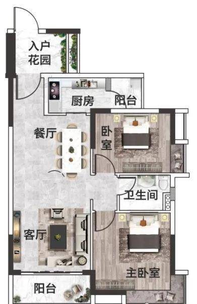 两房两厅一卫 约84m²
