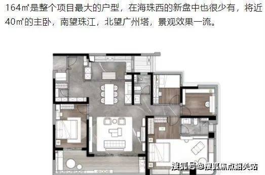 项目涵盖 87 - 160㎡全面积段户型,满足不同需求。86㎡户型总价低,小面积做三房两卫;106㎡是 86㎡的放大版,阳台加长,客厅更大,必要时可在客厅再多隔断一个房间变成四房户型;131㎡是常规的大四房户型,超长阳台和超大厨房提升生活舒适度;164㎡是整个项目最大的户型,将近 40㎡的主卧,南望珠江,北望广州塔,景观效果一流。