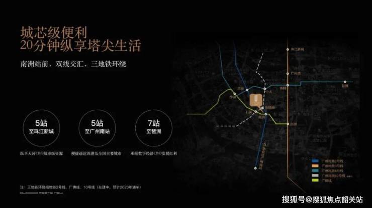 地铁:南洲地铁上盖,双线交汇(2号线、广佛线),三线环绕(10号线在建),4站广州塔,5站珠江新城/广州南站,7站琶洲,坐享老城便利。