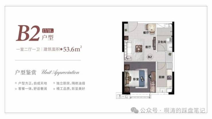 2.轻奢平层公寓 |约 59㎡一室二厅一卫