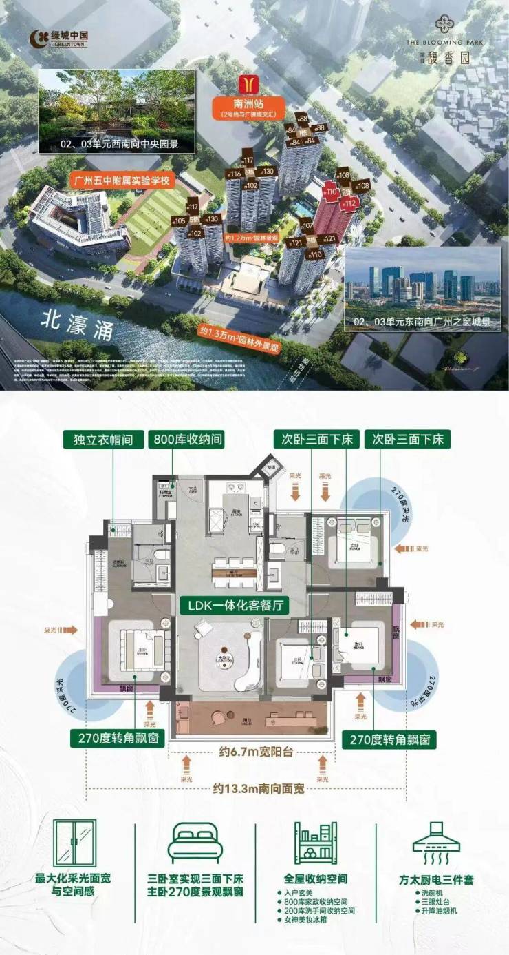 值得注意的是,绿城馥香园的地库直通地铁,出入归家,全程风雨无阻,这点为海珠首创。