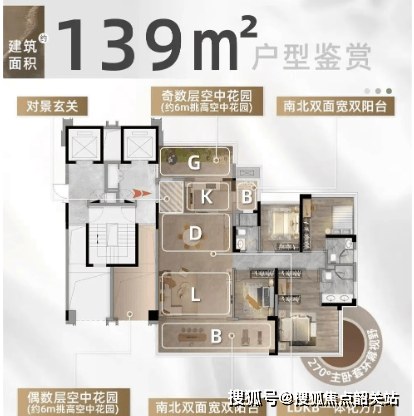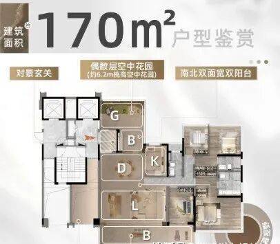 作为增城首个类四代住宅产品,云栖江麓在户型设计上体现出极强的前瞻性。其“云璟组团”大平层主打127㎡、139㎡、170㎡等多个改善级面积段,核心特征集中体现在三大维度:超高使用率、6米挑高空中花园、南北双阳台体系。