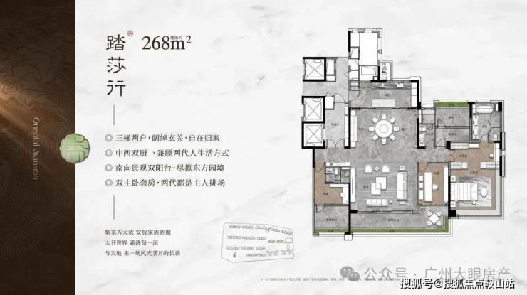 我们再来看看此次加推的268平的大面积户型,作为项目的旗舰,暗藏着哪些巧妙的设计?