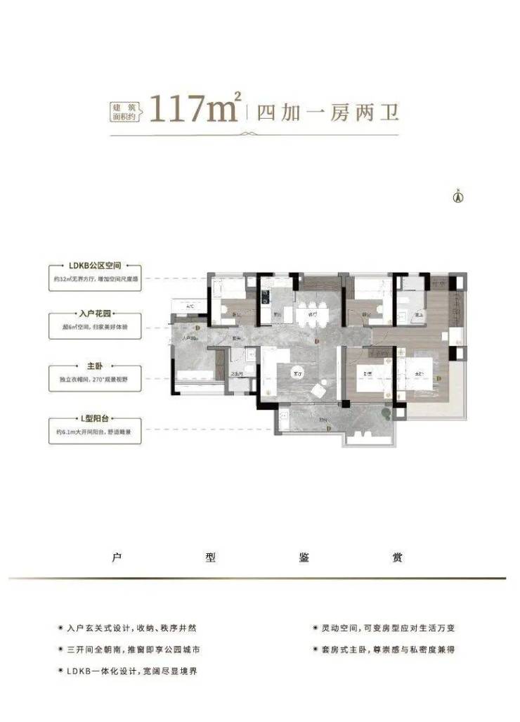 全明采光:楼栋排列采用围合式布局,栋栋观景,最大化每栋楼的采光时间;且外墙面采用铝板设计,美观大气,历久弥新。