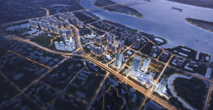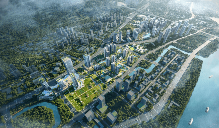项目背靠5000亩龙头山森林公园,南望珠江水,山水相依,所开发地块约90%界面朝向公园,打造 300 米见绿,500 米见园;加上片区规划“5+9”的“公园城市”,一流生态环境实现出门即入园。