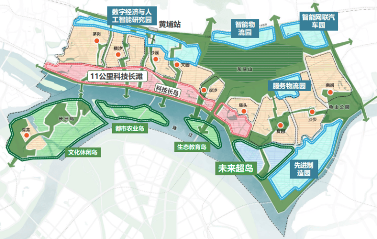 即:1条最美科技长滩、4个珠江滨水岛群、
