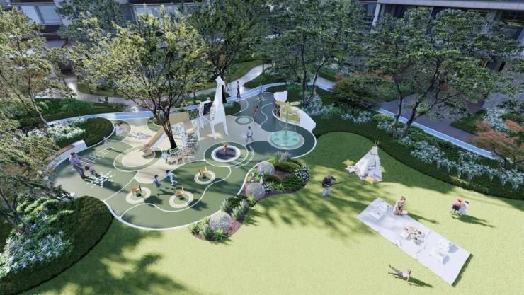 两大草坪:内部旱溪草坪、阳光草坪,给予业主更多邻里、家庭、亲子互动休闲的自然空间,同时让视野更加开阔。