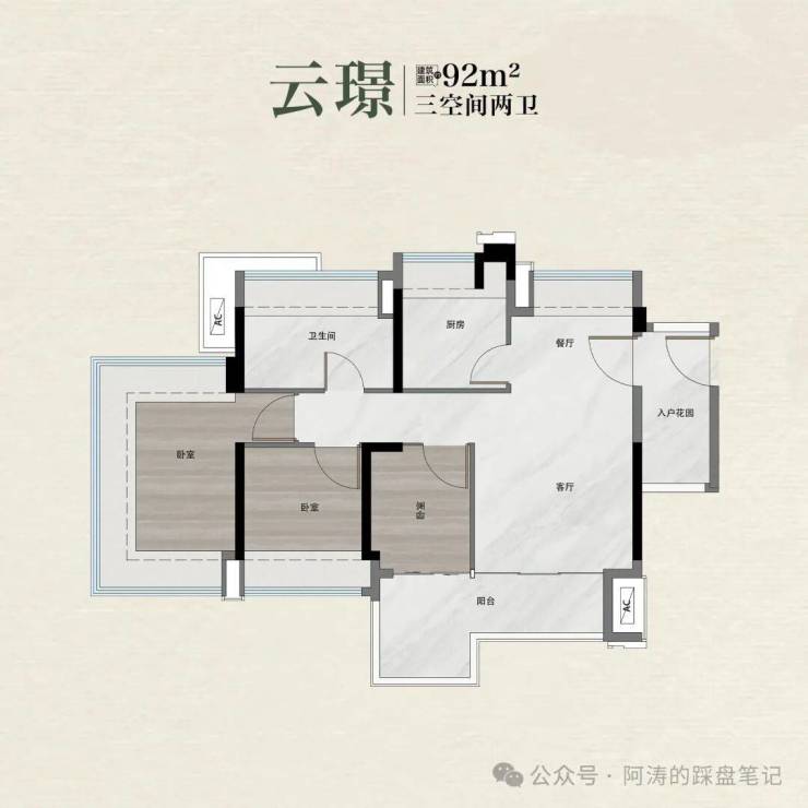 92㎡3房2卫:总价约248-262万