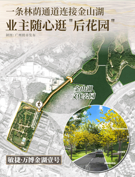 商业与休闲: 自驾短程可达 “番禺万达广场”、“奥园广场” 等大型综合体,社区底商满足日常所需。金湖公园本身即为绝佳的日常休闲运动场所。