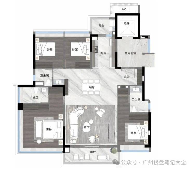 ——板式专梯入户·双主套双阳台配置·44㎡社交大方厅