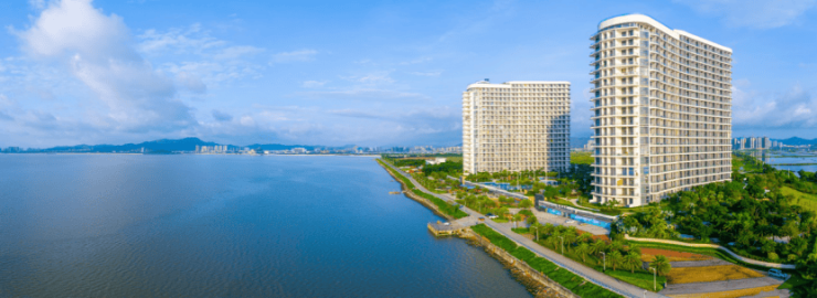 锦绣海湾城项目坐落于中山市翠亨新区伶仃洋海湾区,是华南少有的海湾生态居住区的大型滨海项目,项目总占地约万亩,社区早期建设有联排/独栋别墅、洋房、公寓及商铺等多元化产品;现在售产品为约90-127㎡临湖洋房,以及约155-195㎡的花园美墅。