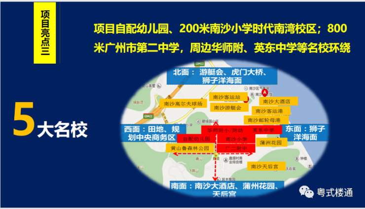 中学:广州市二中广州市第二中学南沙附属学校,小学+初中,规划将于2020年9月开学,离项目800米