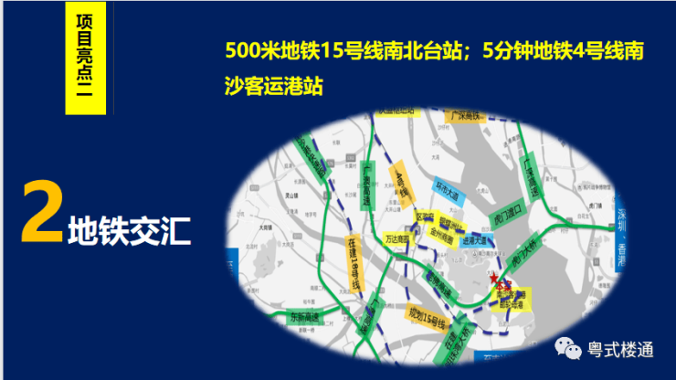 1、地铁:800m 15号线南北台站,5分钟直达4号线南沙客运港站