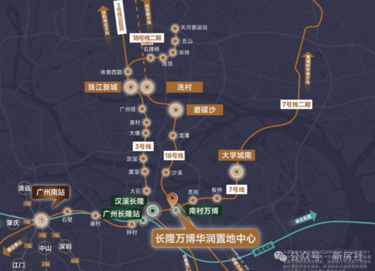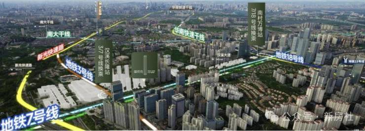 交通方面,项目距离地铁3/7号线汉溪长隆站约500米(步行约8分钟),18号线南村万博站约1.2公里,3站直达珠江新城、4站可达琶洲;自驾紧邻汉溪大道、番禺大道,20分钟畅达天河、海珠等核心CBD。商业配套上,项目自带约24万㎡万象系商业(预计2026年开业),创新“街区+Mall”模式;周边汇聚万达广场、四海城、天河城等14座商业体,商业体量超10个天河城,满足一站式消费需求。