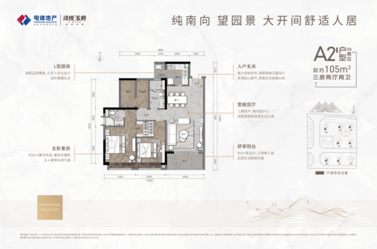 楼栋为全点式布局,南北间距超60m,庭院尺度开阔,景观层次丰富,匠心筑造低密度舒适人居。电建地产·洺悦玉府打造105-125㎡三至四房户型,以两梯四户、南北对流设计,悠享生活之阔。
