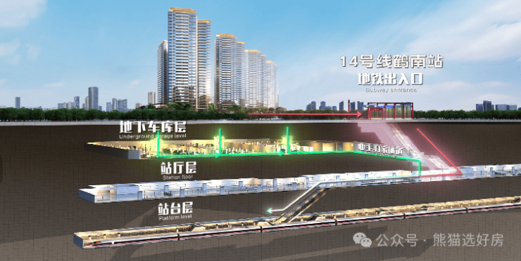 目前项目到2号线黄边D出口需要1.8公里,步行相对较远的,后期可以买个小毛驴,会方便很多。后期去14号线鹤南站相对比近,距离项目地面过去800多米,在小区5号楼下有通往地铁站,大概200米左右,会近很多。