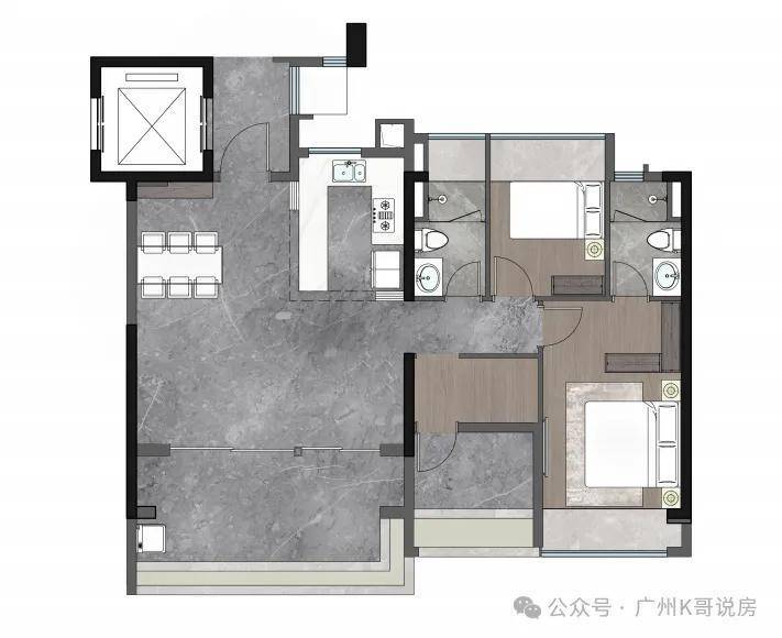 「奢阔通厅」约44㎡LDKG大方厅设计,南北通透,同频层峯生活主场;