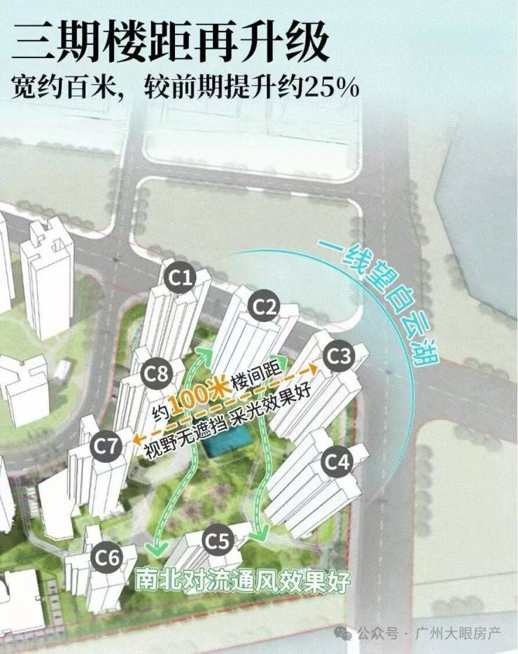 另一方面,三期组团与白云湖区不到100米,还是全南向设计,在整个白云湖板块,亲水性和景观性最好。