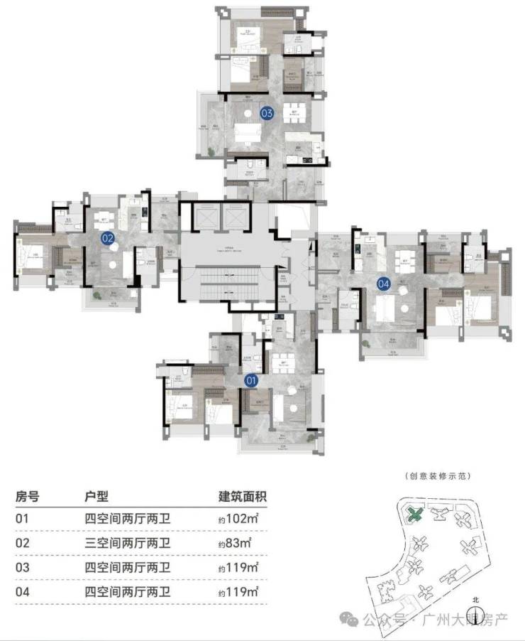 主推建面约84-118平三至四房户型,作为最新报建组团,使用率实现100%,部分户型甚至能做到107%。