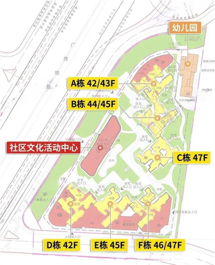 附近有全国规模最大的万象城,已于2023年6月开工,预计26年正式营业,太古汇购物中心,太古里滨水街区2022年9月动工,27年营业,小区也会配建4.3万方社区商业。