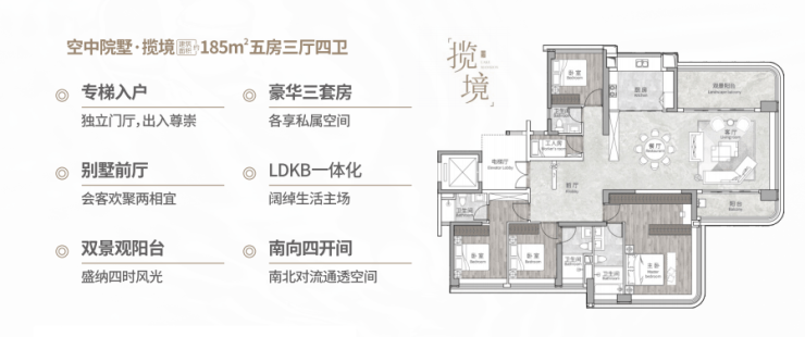 花都首个东南向纯板楼社区,超高使用率,独梯入户,空中院墅户型设计,奢享双阳台巨幕视野。建面138㎡起步的纯粹豪宅作品,营造高端生活圈层,敬献城市峯层人士。
