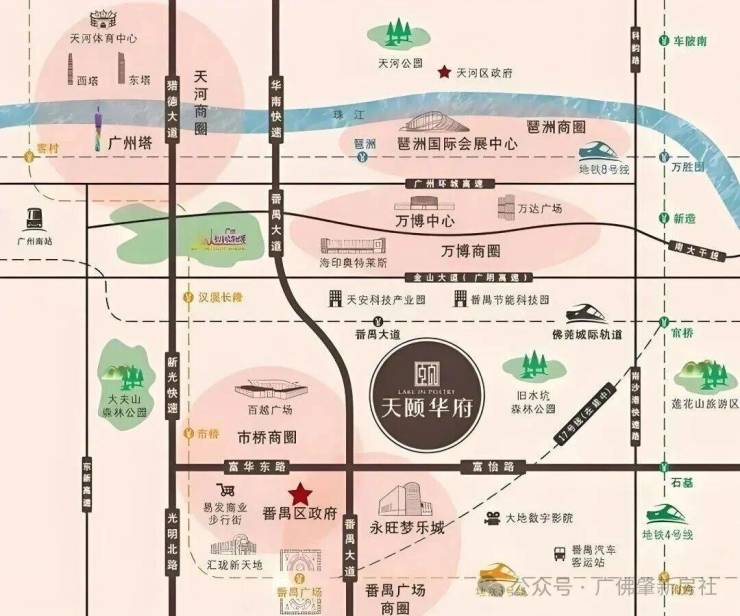 天颐华府位于番禺广场板块,可快速到达珠江新城。