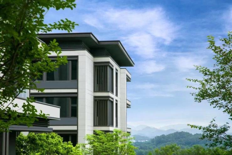 合院产品:以天然花岗岩延续自然地貌,打造特有的山地景观,立面采用多玻璃幕墙、真石漆、仿石材料、上乘铝板、瓦的有序结合,雕琢产品细节 演绎大气优雅格调。