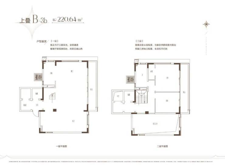 建筑面积约220-265㎡,大尺度大阳台,双层大挑空设计;