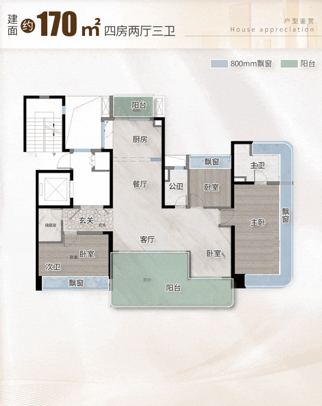 建面约170㎡的四房,则是天奕二期“终极改善”的王牌作品。