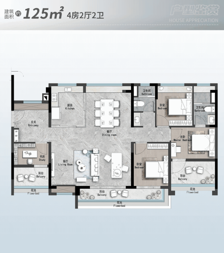 建面约107m² | 4空间二厅二卫