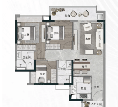 知识城悦辰壹号户型多样,建筑面积段涵盖 89 - 168㎡三至五房,同时还有叠墅产品,满足不同家庭结构和购房需求。89㎡三房采用经典竖厅设计,动静分区,三开间朝阳,约 5.8 米的阳台连接客厅和次卧,采光、通风与观景效果俱佳;107㎡大三房,约 4.2 米阔绰客厅,约 6.6 米大面宽阳台,适合三代同堂居住;128 平四房,客厅、餐厅、阳台一体化设计形成洄游动线,四开间朝南,通风采光效果好,且带豪华主套,满足二胎家庭需求;143 平四房,三个卫生间且全卧室配备飘窗,增加收纳与活动空间,横厅外接大阳台,景观视野好,还避免了豪宅税,节省置业成本;168 平五房,超阔横厅搭配五开间朝南设计,全屋南向采光面约 17 米,主卧开间约 5.8 米,实现小家化,居住舒适度高。